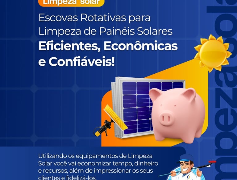 Remoção eficaz de sujeira e poeira que afetam a eficiência dos painéis solares.